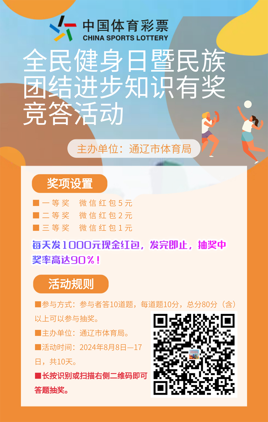 2024年8月5日,通遼市大尚網(wǎng)絡(luò)技術(shù)服務(wù)有限公司與通遼市體育局達成合作協(xié)議,大尚網(wǎng)絡(luò)公司負責通遼市體育局“全民健身日暨民族團結(jié)進步知識有獎競答活動”系統(tǒng)開發(fā)制作工作,活動正在進行中,敬請期待。