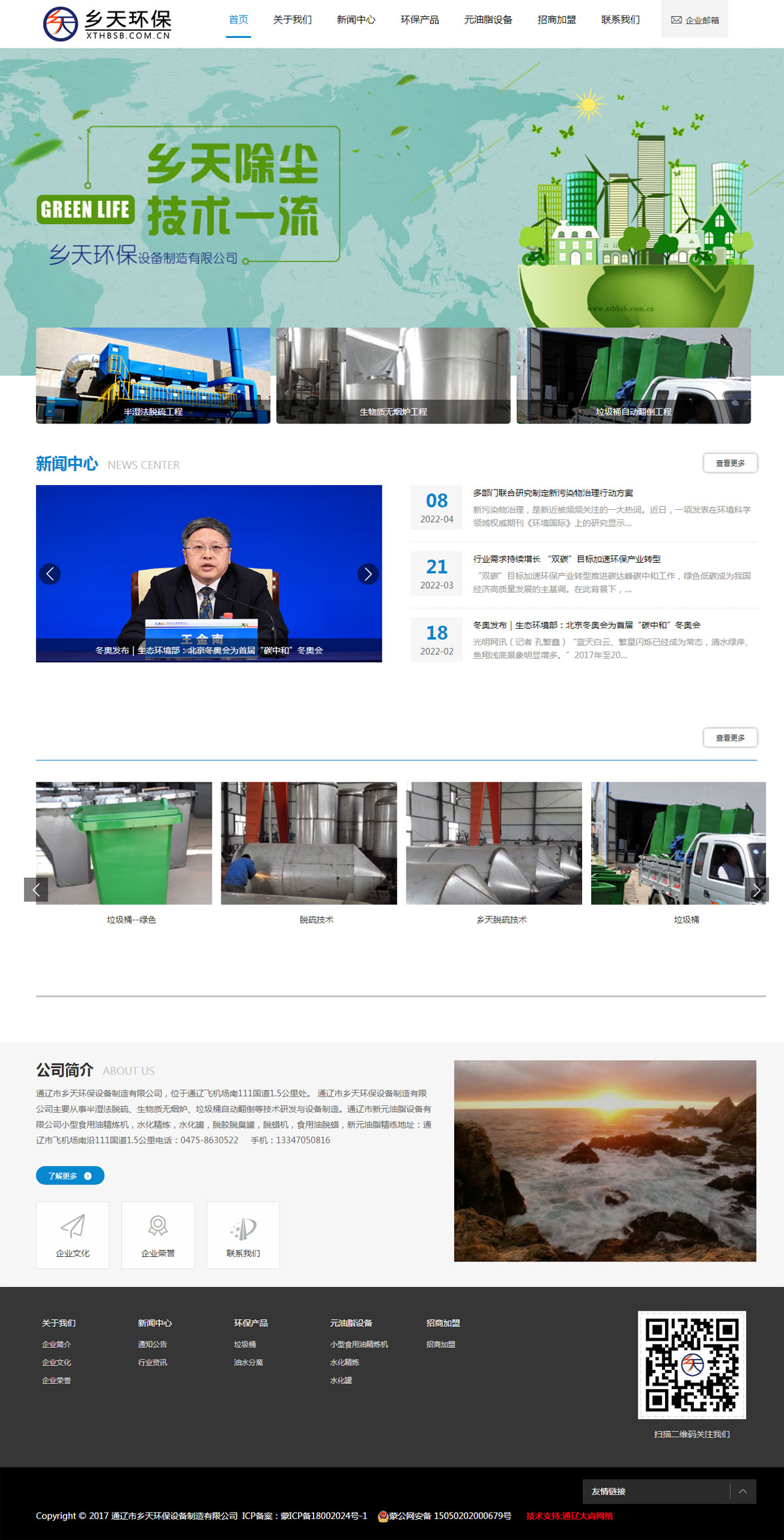 通遼市鄉(xiāng)天環(huán)保設(shè)備制造有限公司,位于通遼飛機場南111國道1.5公里處。 通遼市鄉(xiāng)天環(huán)保設(shè)備制造有限公司主要從事半濕法脫硫、生物質(zhì)無煙爐、垃圾桶自動翻倒等技術(shù)研發(fā)與設(shè)備制造。